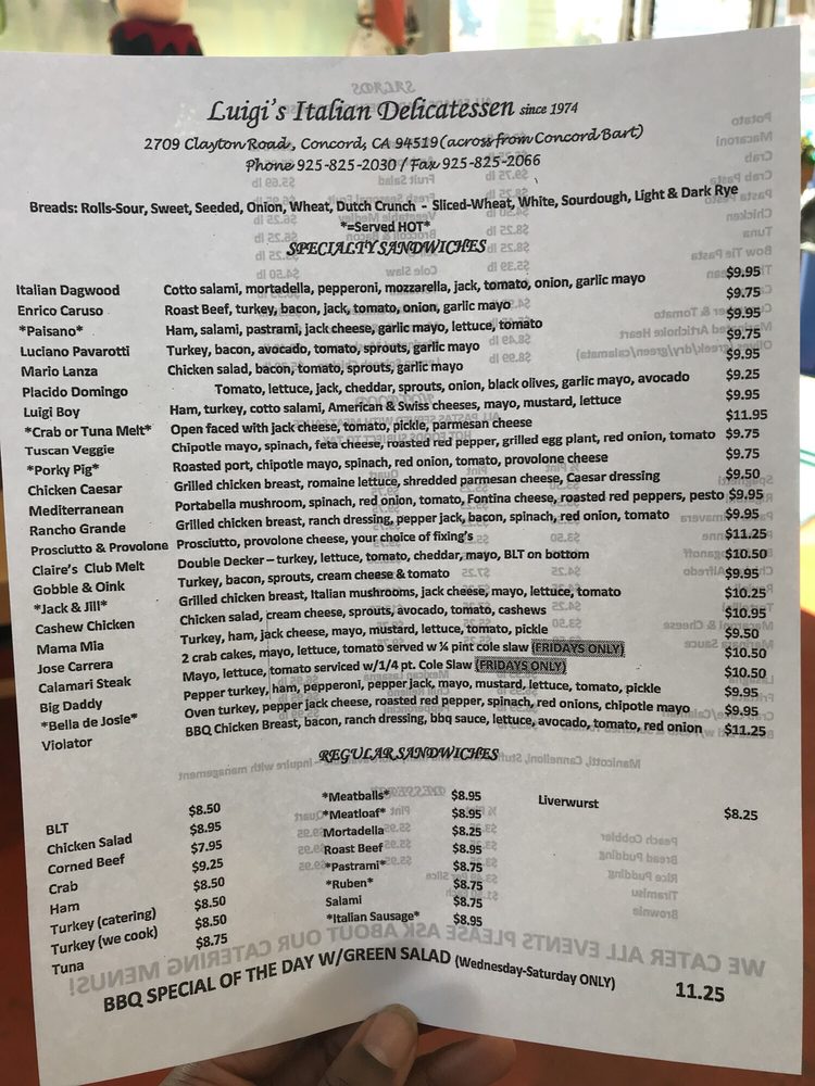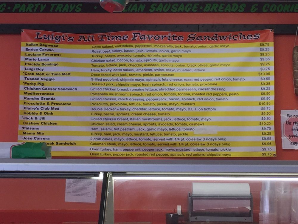 Luigi’s Italian Delicatessen Menu (Update 2025)